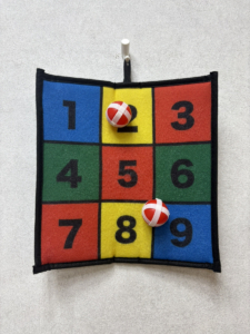 的には1〜9までの数字が書かれており、そこにボールを2つ当てて、当たった数字をもとに計算をしていく仕組みです。