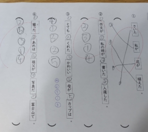問題の趣旨としては、文章を正しい形に並べ替えることが大事なので、言葉を番号で表すことを提案しました。